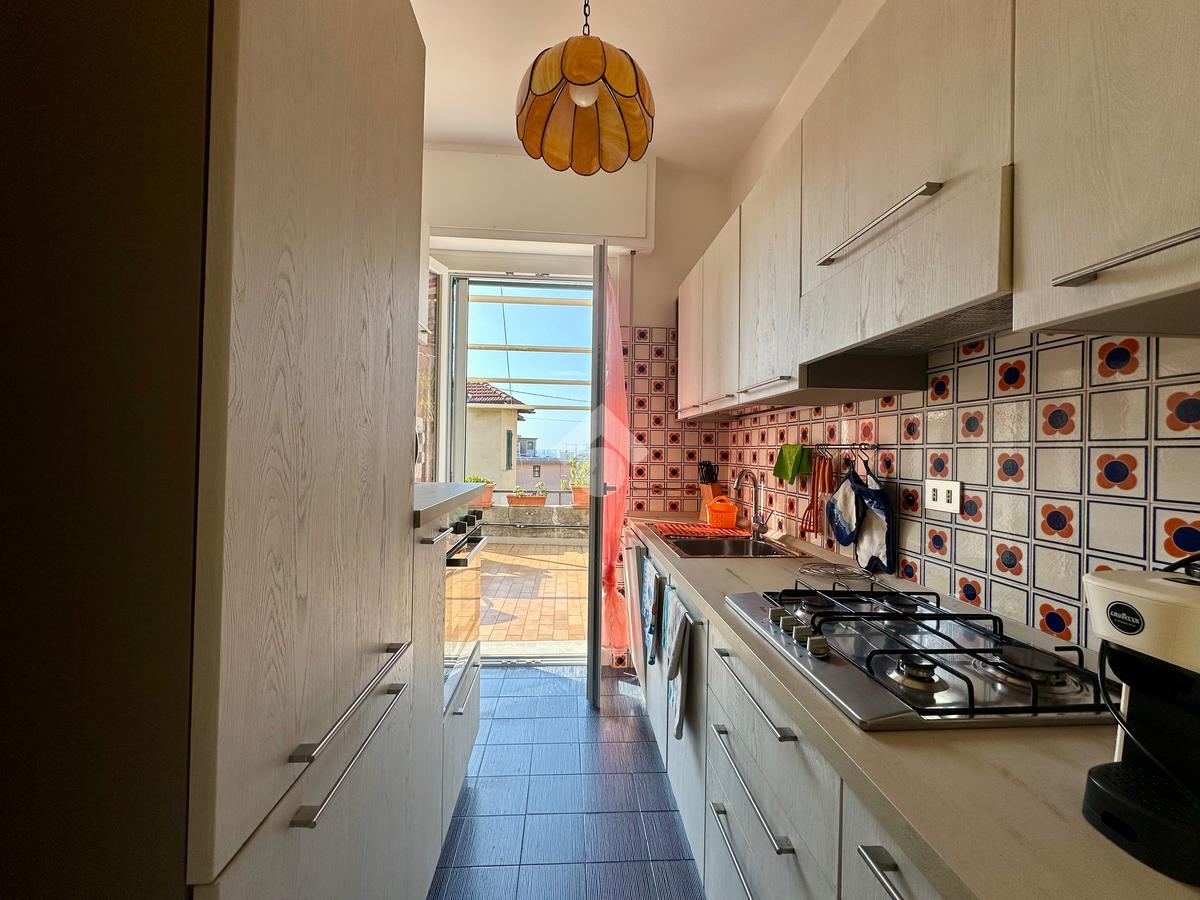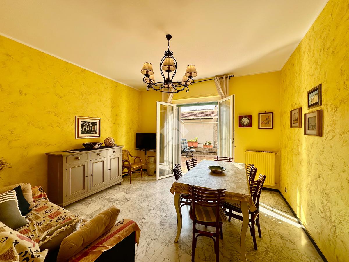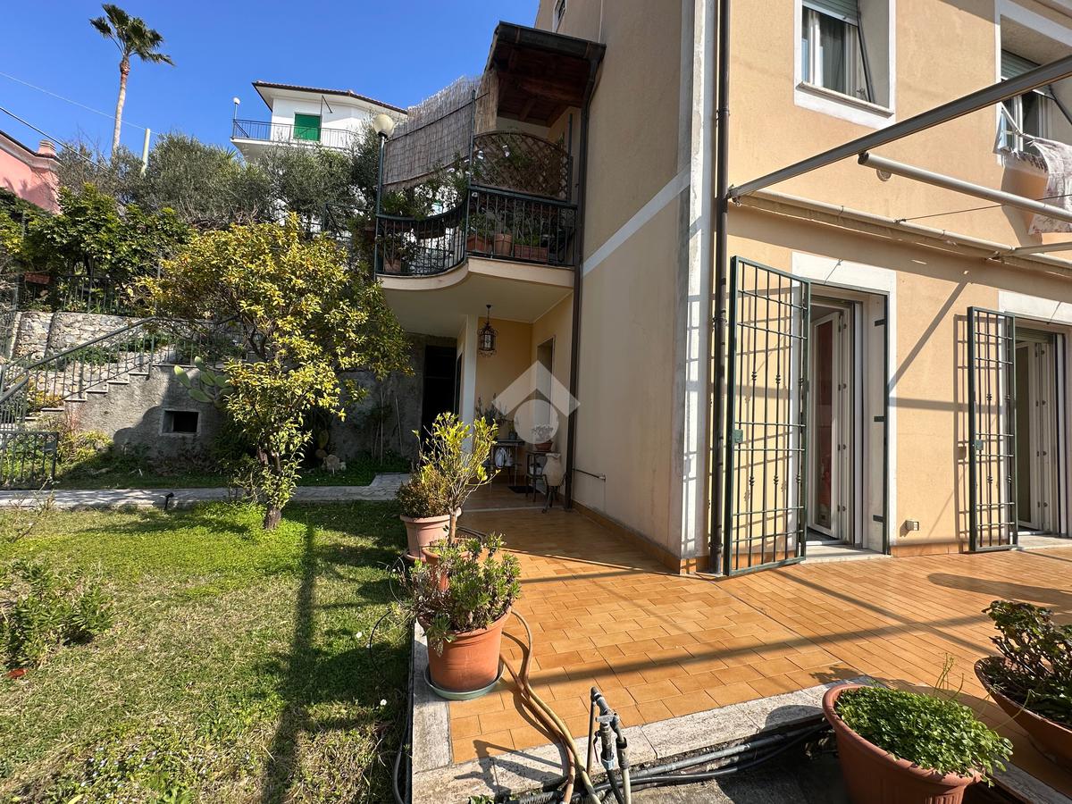 In una delle zone più richieste di Finale Ligure, proponiamo appartamento con splendida vista mare, situato al primo piano di villa bifamiliare, senza spese condominiali e con giardino privato.