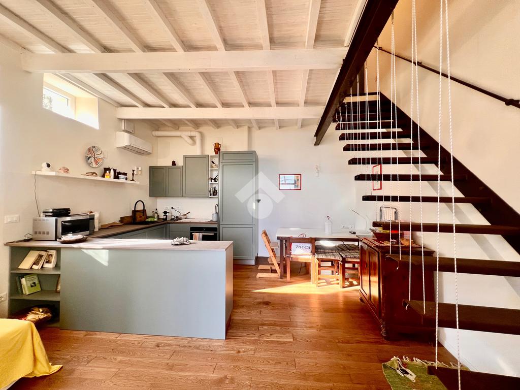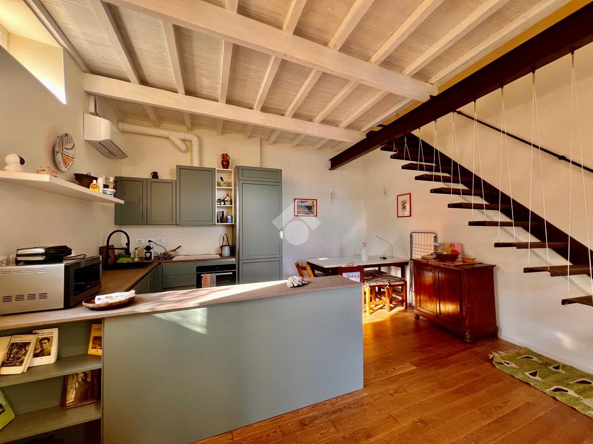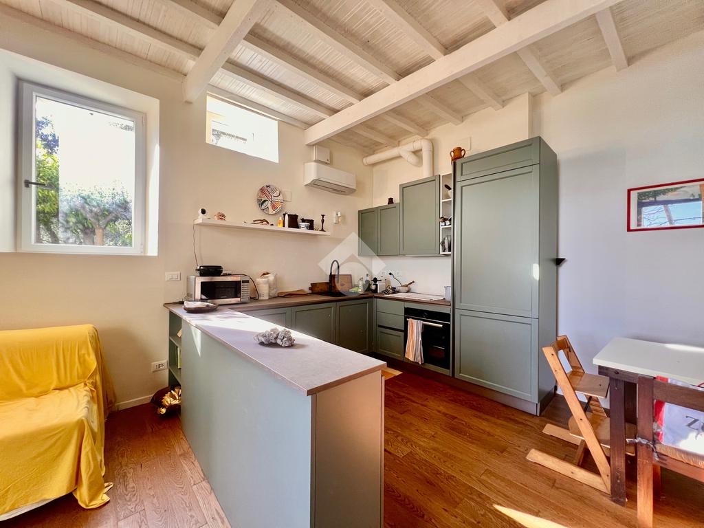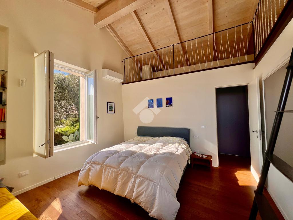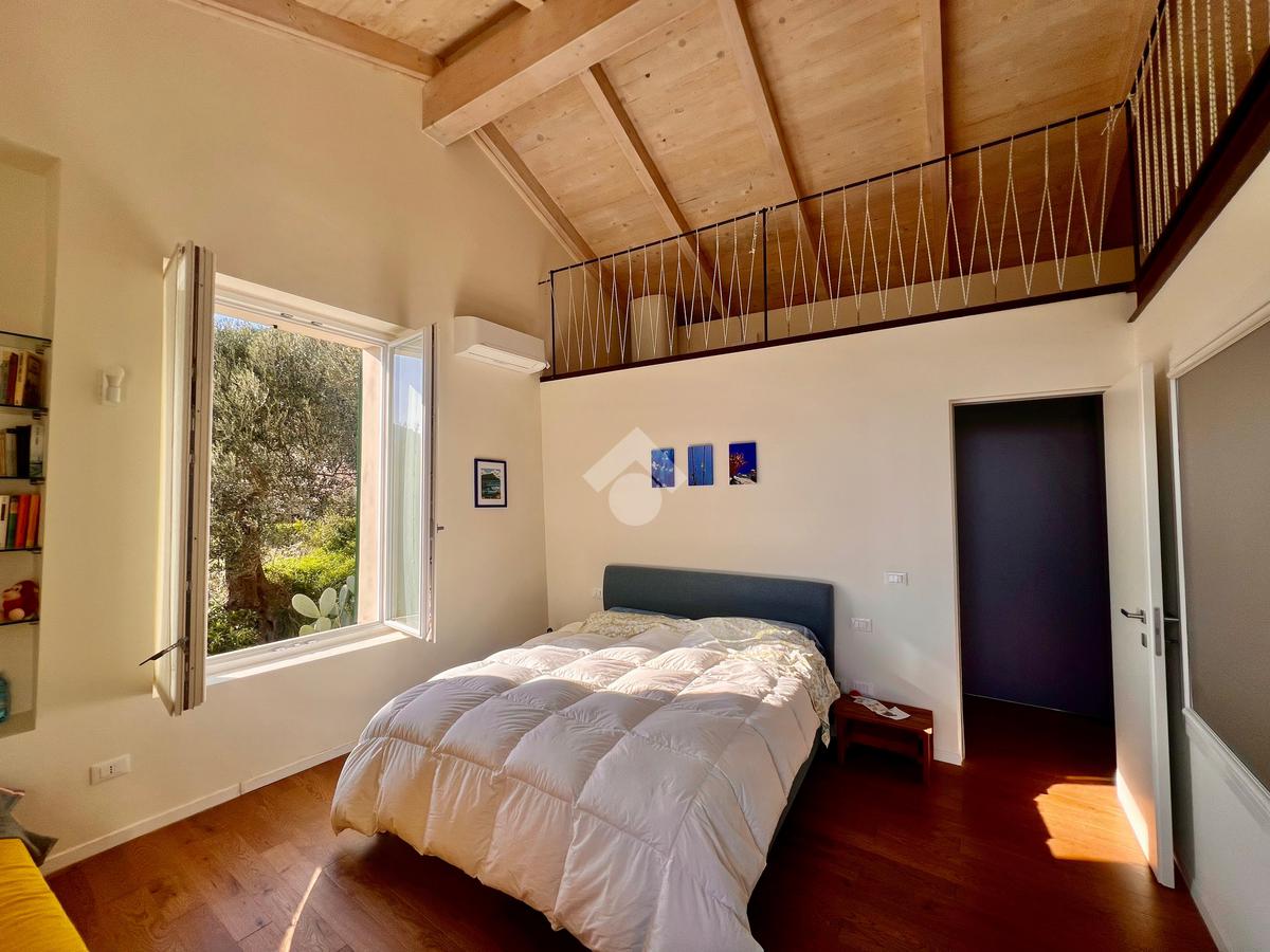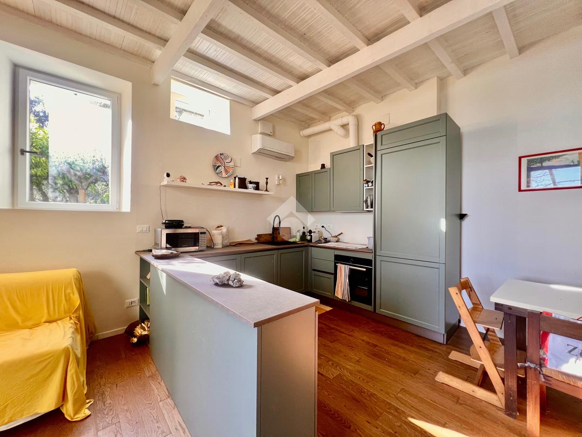 L'ingresso è sul luminoso soggiorno con angolo cottura e uscita su un ampio giardino. La zona notte al piano superiore, accessibile tramite scala interna è composta da una camera da letto con comodo soppalco con un ulteriore posto letto , da una cabina armadi e un bagno finestrato e dotato di doccia.