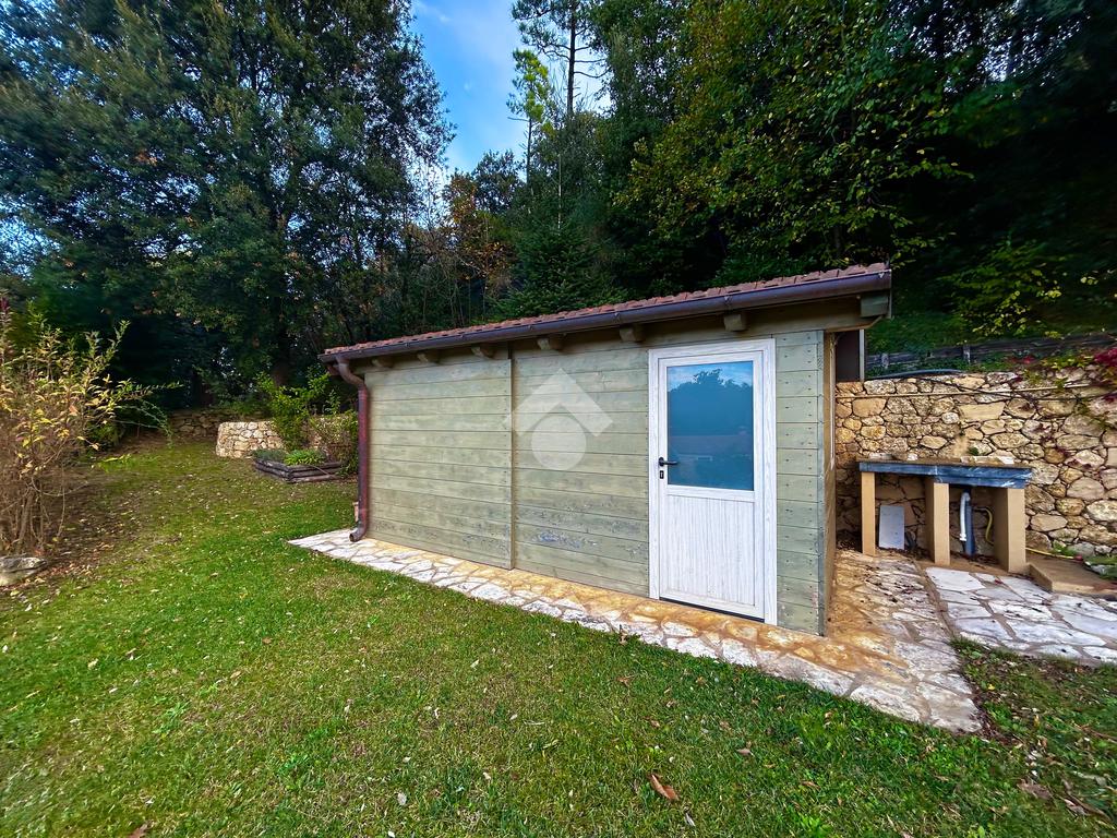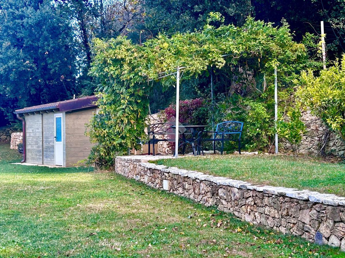Il giardino a prato inglese e terrazzato, offre alberi di grande fusto, un gazebo in ferro battuto e un locale ricovero attrezzi di circa 20 mq.