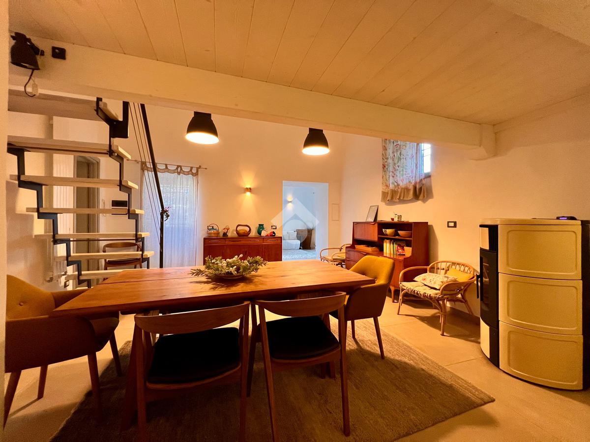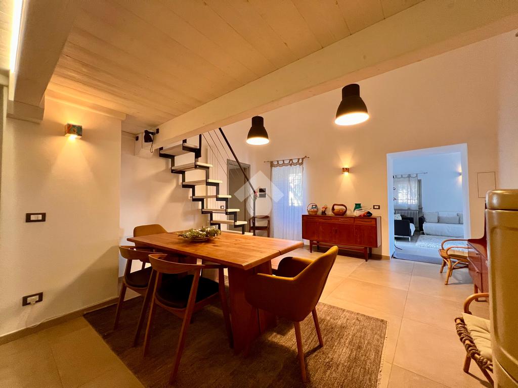 La proprietà si sviluppa su un unico livello e comprende un luminoso soggiorno con grandi vetrate e un affaccio sul giardino di proprietà, da cui si sviluppa un'ampia sala da pranzo con cucina open space.
