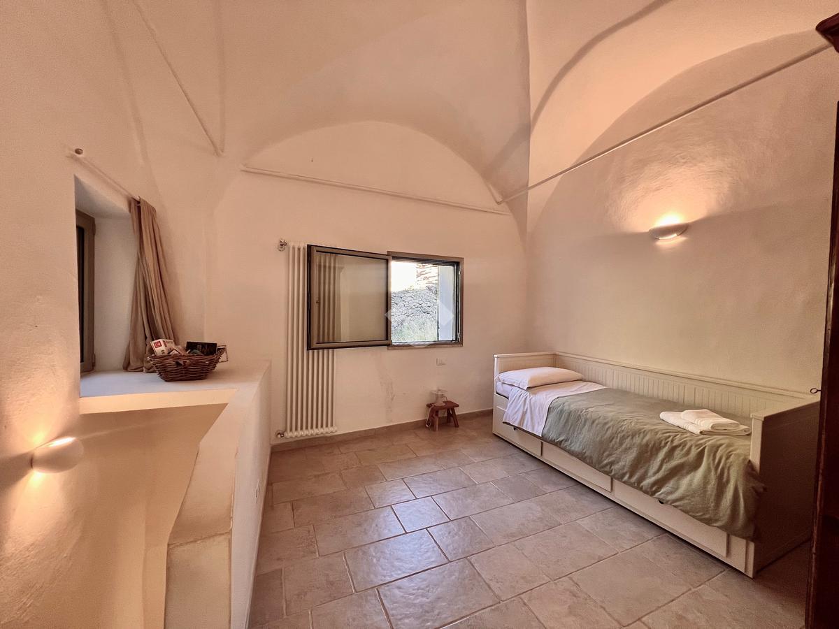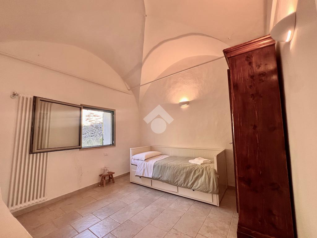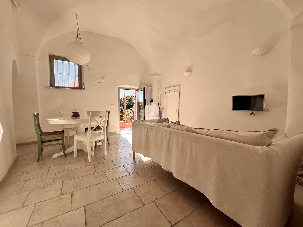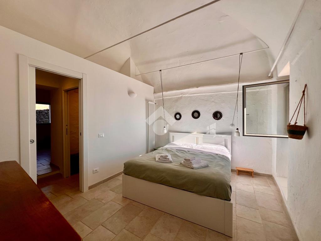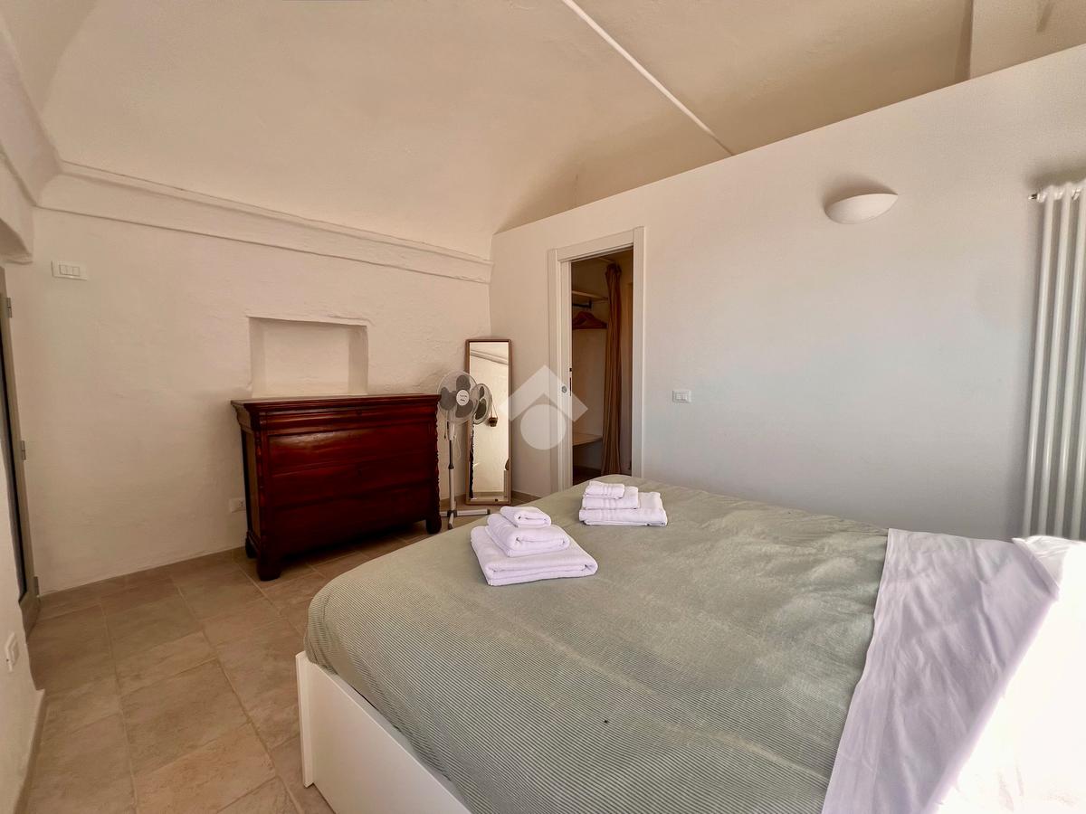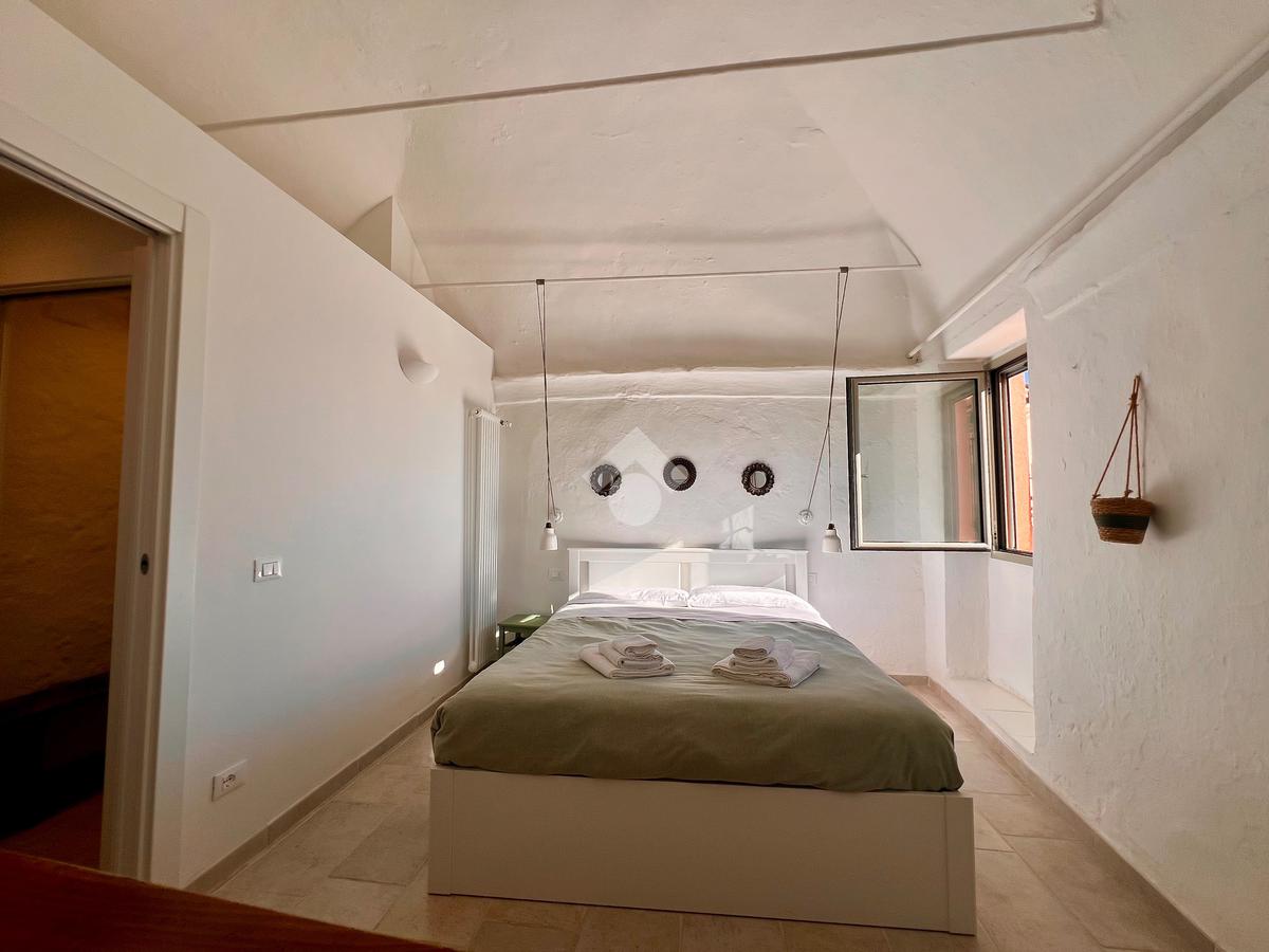 Il piano superiore ospita la zona notte, composta da una camera matrimoniale, con accesso indipendente tramite una scala esterna e una piacevole vista aperta con scorcio sul mare, una seconda cameretta con vista sul retro e un bagno di servizio.